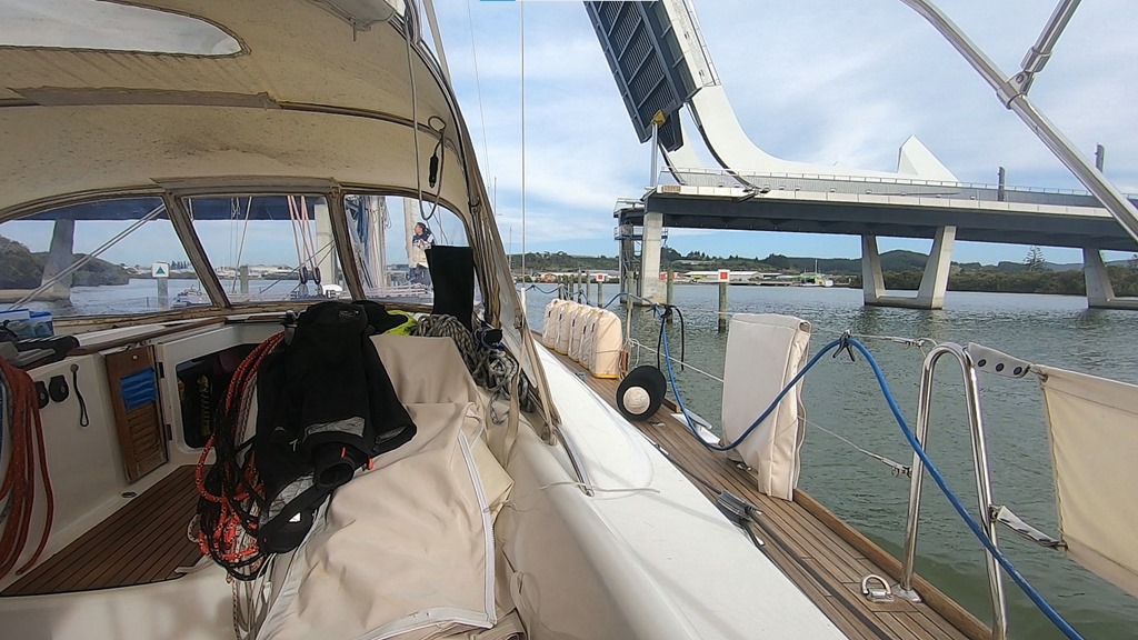 Y2K si stacca dal pontile e insieme alla ZoomaX di Anna e Paolo, finalmente riuniti dopo due anni di separazione forzata, e navighiamo verso l’imboccatura del fiume. I nostri amici vogliono approfittare delle brezze da ovest per testare la barca e poi rientrare a Whangarei. Passiamo sotto il ponte Te Matau ā Pohe per l’ultima volta e navighiamo per circa 10 miglia fino al nostro nuovo ormeggio, il posto B55 del Marina di Marsden Cove.
